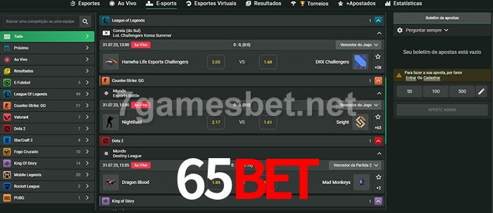 O 65bet oferece uma grande seleção de opções de apostas em e-sports com probabilidades competitivas